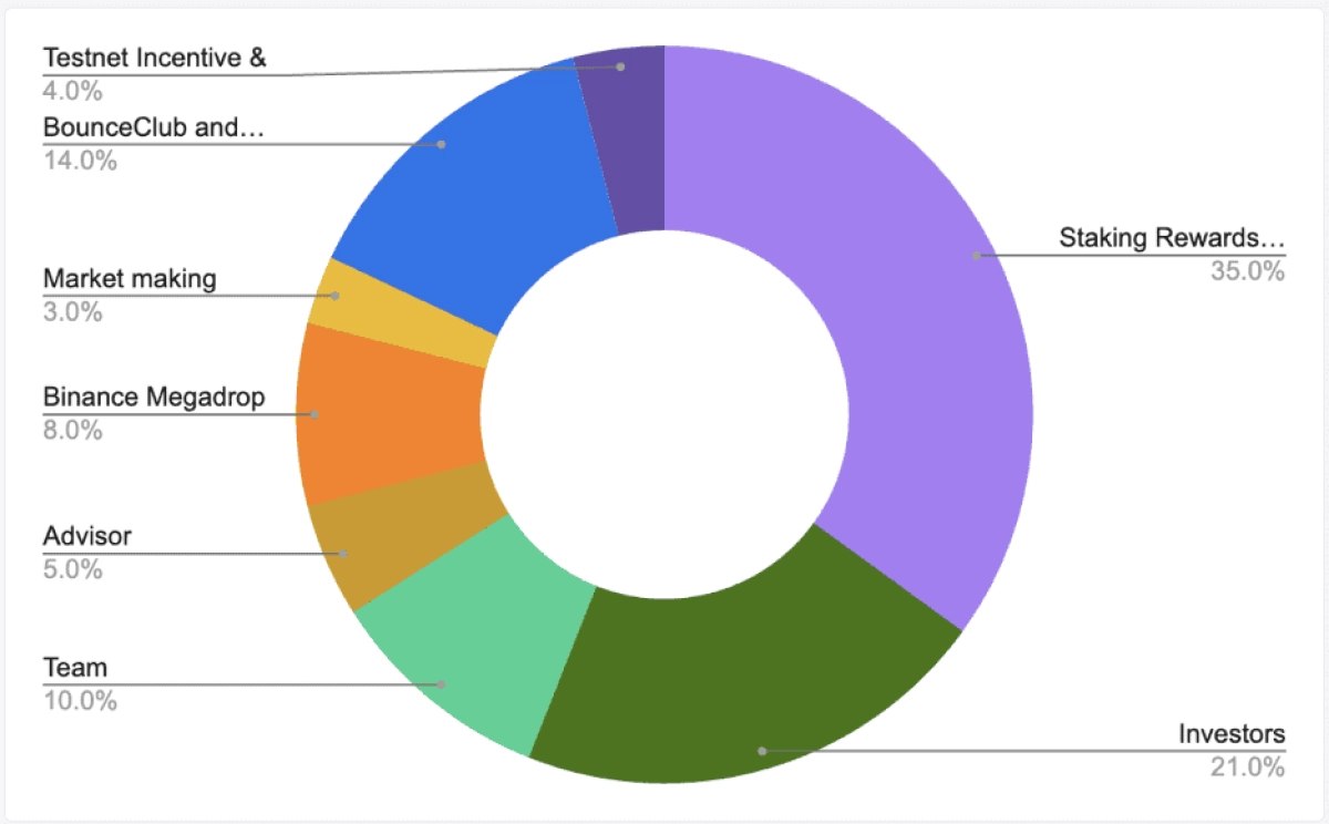 BB is the native token that powers the BounceBit platform. The total supply is capped at 2.1 billion (paying homage to the number of 21 million – Bitcoin’s capped supply.)