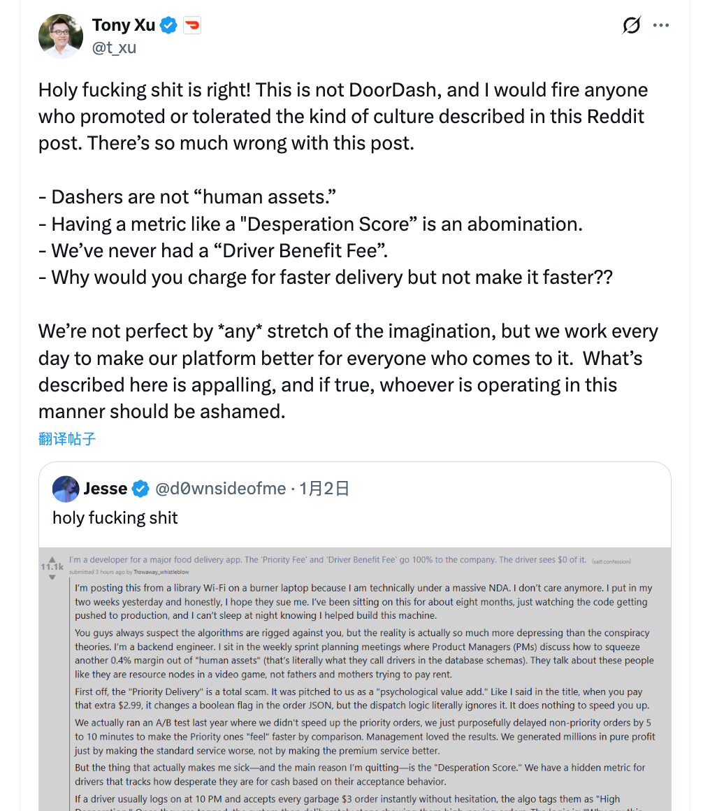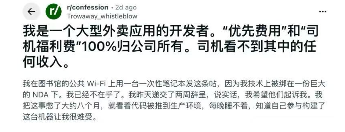 The company analyzes ride-hailing drivers' situations and assigns them a "desperation score." The more financially strained the driver, the fewer good orders they receive; the so-called priority delivery for food orders is fake, as regular orders are deliberately delayed; various "driver welfare fees" are not given to drivers at all but are used to lobby Congress against unions...
