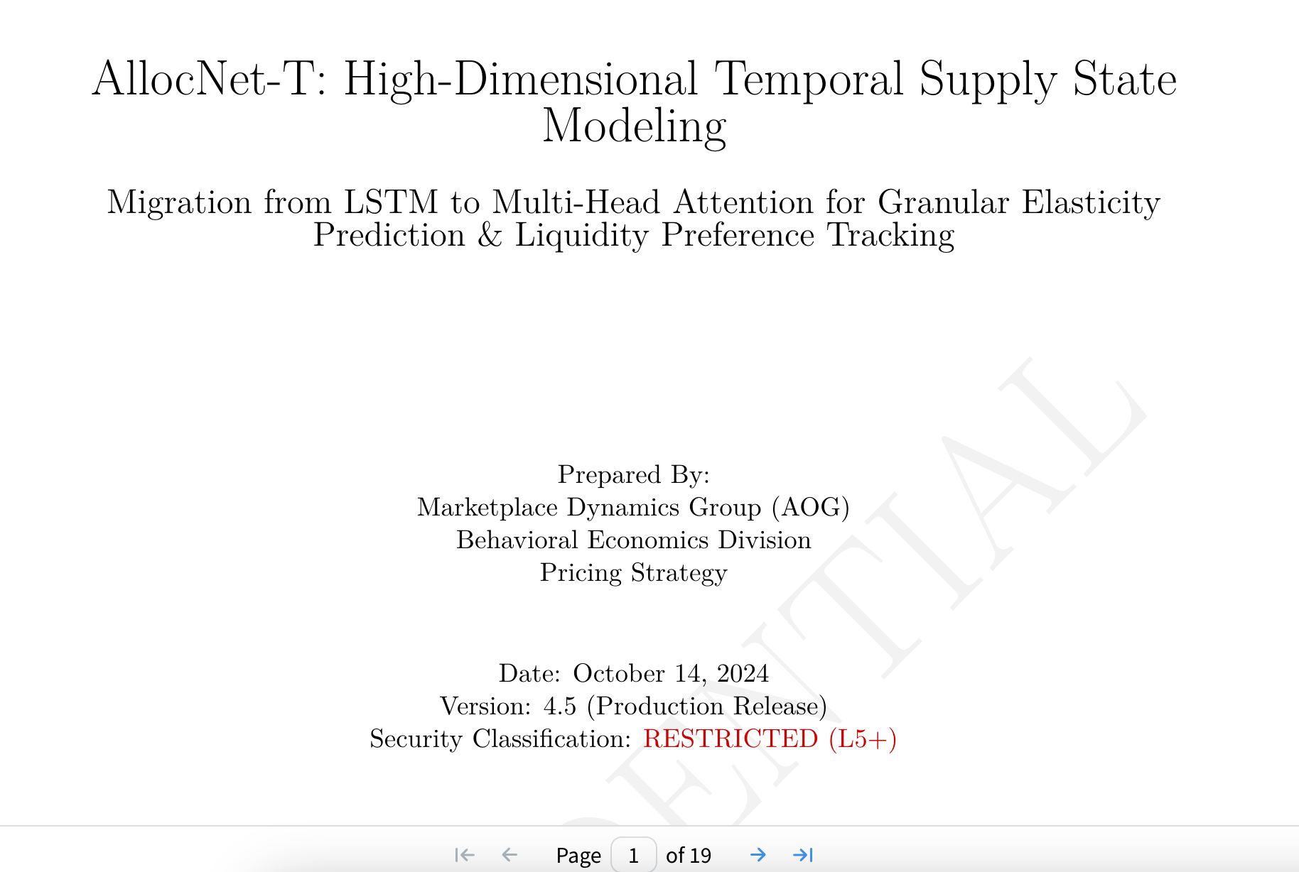 He contacted the poster, who immediately sent over an 18-page "internal technical document" titled "AllocNet-T: High-Dimensional Temporal Supply State Modeling."