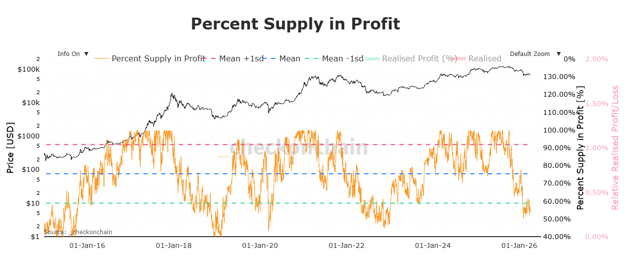 Checkonchain data showed that over 45.8% of the total supply currently sits at a loss, with only 54.12% in profit. Rising losses have pushed most market participants to capitulate, especially whales.