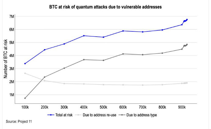 Duong said about one-third of the Bitcoin supply may be structurally exposed because their public keys are already visible on the blockchain. That figure is close to 33%, or about 6.51 million BTC, held in address types where public keys are revealed and could, in theory, be derived into private keys by a powerful enough quantum computer. Reports have highlighted that this exposure comes mostly from address reuse and older wallet formats.