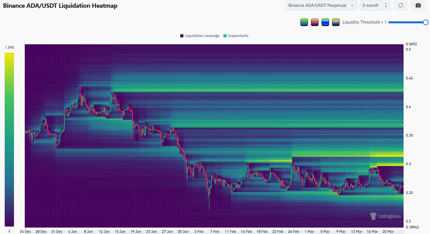 To the south, another liquidity cluster lay at $0.240, just below the current range lows. A price drop below $0.235-$0.240 could invalidate the buying opportunity and assert seller dominance.