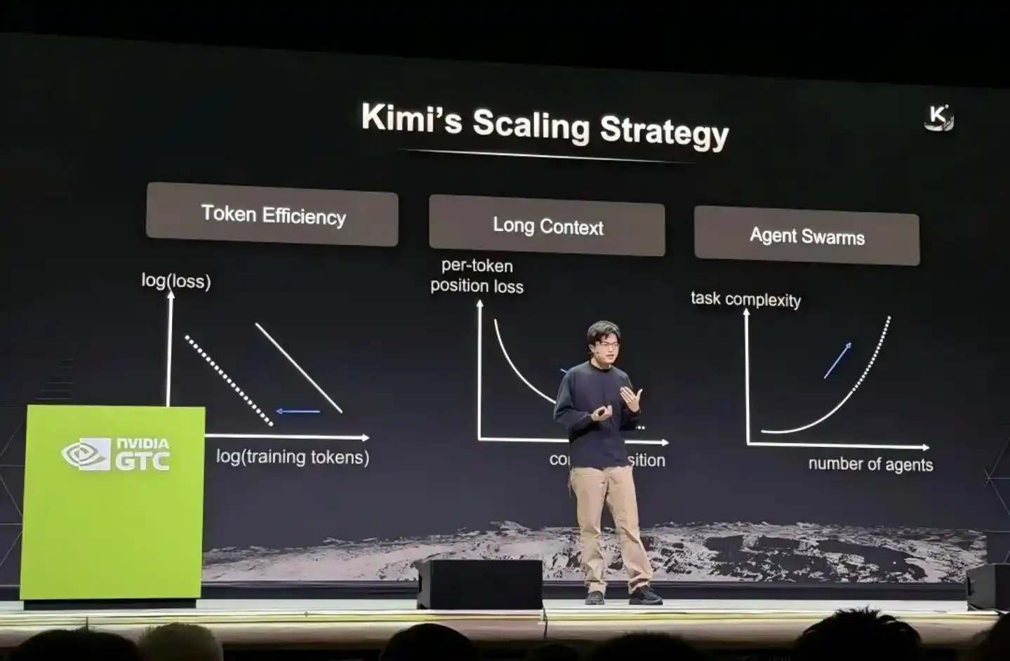 At the NVIDIA GTC conference, he systematically disclosed Kimi's technology roadmap, summarizing its scaling strategy with three keywords: Token efficiency, long context, and Agent clusters. He emphasized that to continuously push the upper limits of large-model intelligence, it is necessary to重构 foundational elements like optimizers, attention mechanisms, and residual connections.