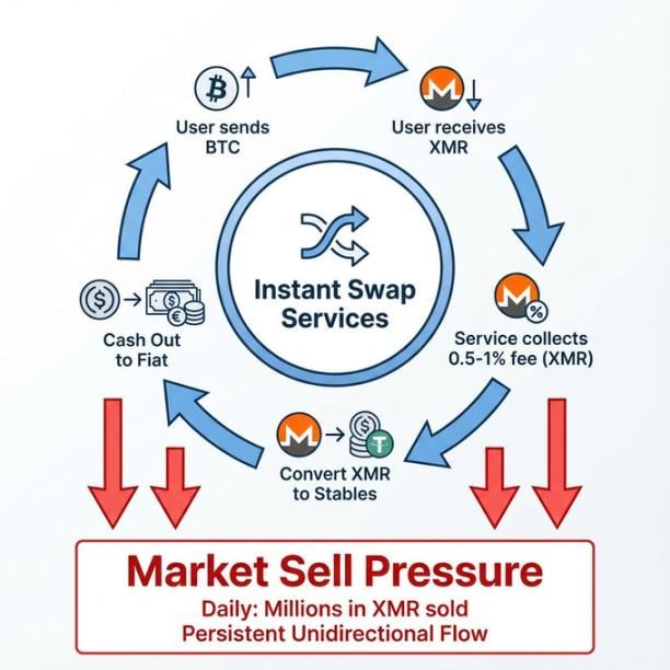 And this is a conservative estimate. If Monero truly accounts for 20% of the volume and fees are 1%, that's $300 million annually, approaching $1 million in daily selling pressure.