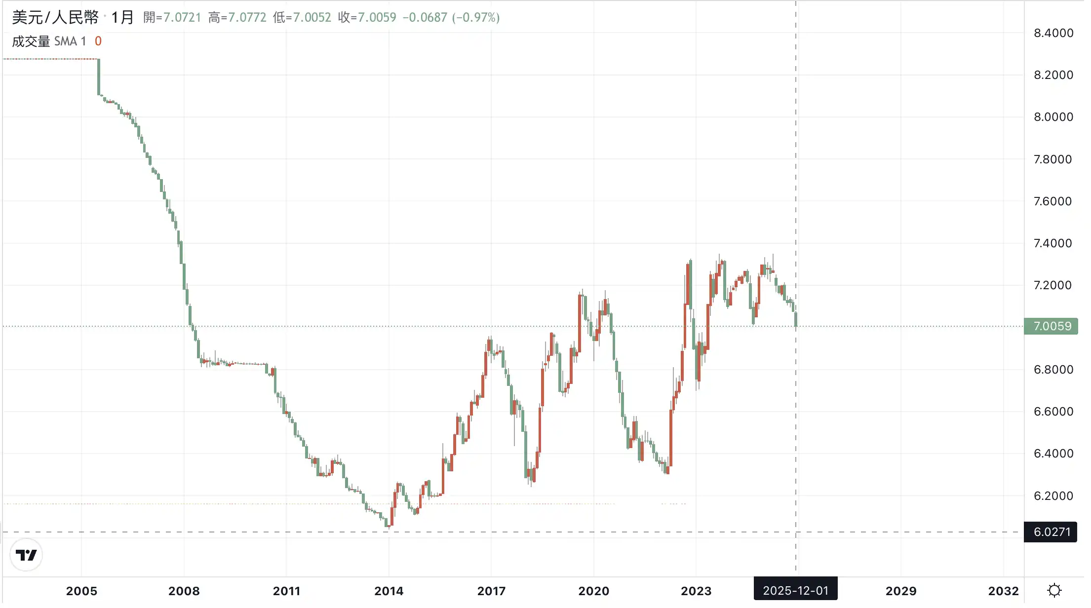 In 2000, the annual average exchange rate of the US dollar to the Renminbi was approximately 8.28. Subsequently, the Renminbi entered a nearly ten-year appreciation cycle, with its exchange rate against the US dollar rising to around 6.1.