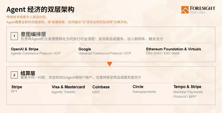 This infrastructure battle will not be dominated by a single protocol but is forming a clear two-tier architecture. The intent layer defines "who is the merchant and how to match," while the settlement layer defines "how funds actually flow." The two layers are independent and evolve separately but are indispensable. Without either layer, the commercial closed loop of the Agent economy cannot be realized.
