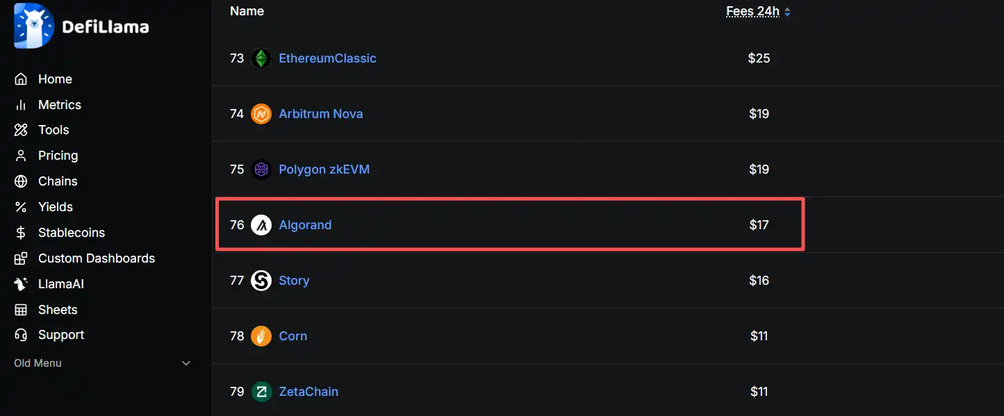 This is the daily total protocol revenue for Algorand—a chain once crowned the "blockchain trilemma solver," founded by Turing Award winner Silvio Micali, and boasting top-tier technical credentials.