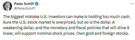 Taken together, this reinforces Peter Schiff’s point: An overvalued dollar can act as a catalyst for capital rotation into risk assets, including crypto.