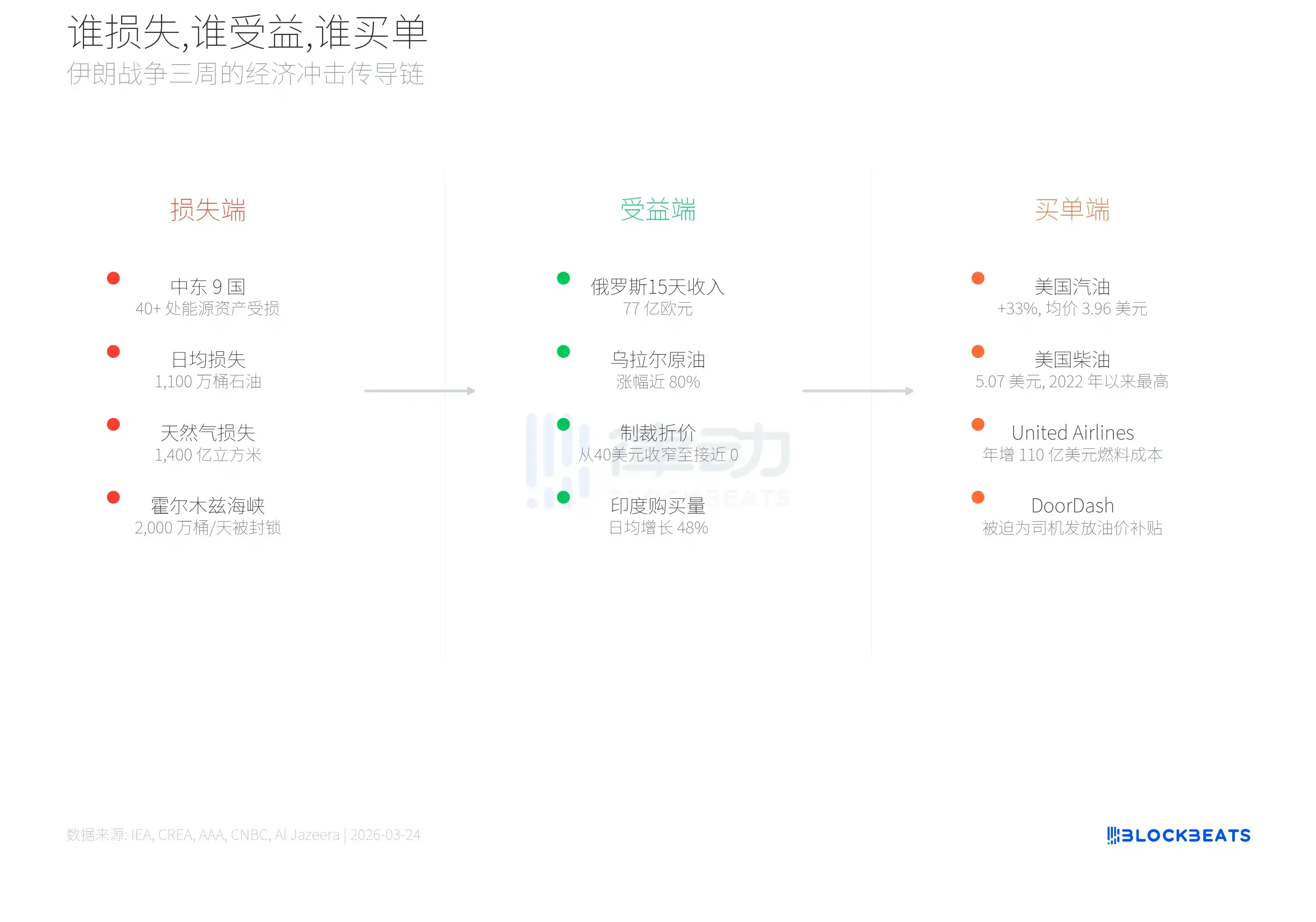 Even the gig economy is affected. According to a Philadelphia Inquirer report on March 23, DoorDash began issuing weekly gas subsidies of $5 to $15 and 10% cash back on gas to drivers, in response to reduced order acceptance due to rising fuel costs. When a food delivery platform has to pay for a war in the Middle East, the length of the shock transmission chain needs no further explanation.