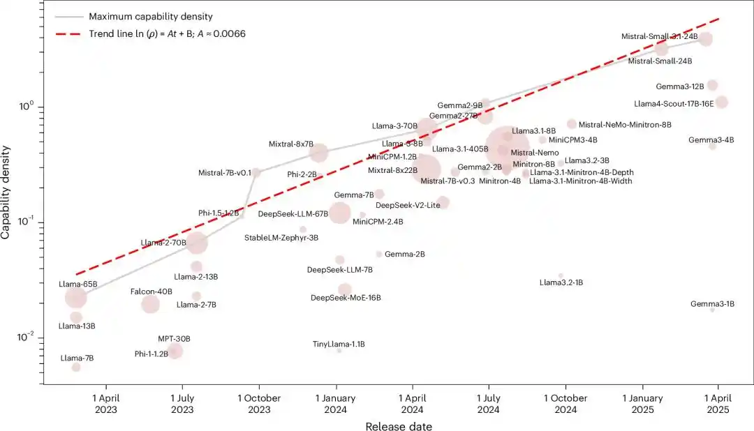 But the Density Law offers a counterintuitive judgment. Given the continuous exponential growth in density, any state's strongest model only has an optimal window of a few months.