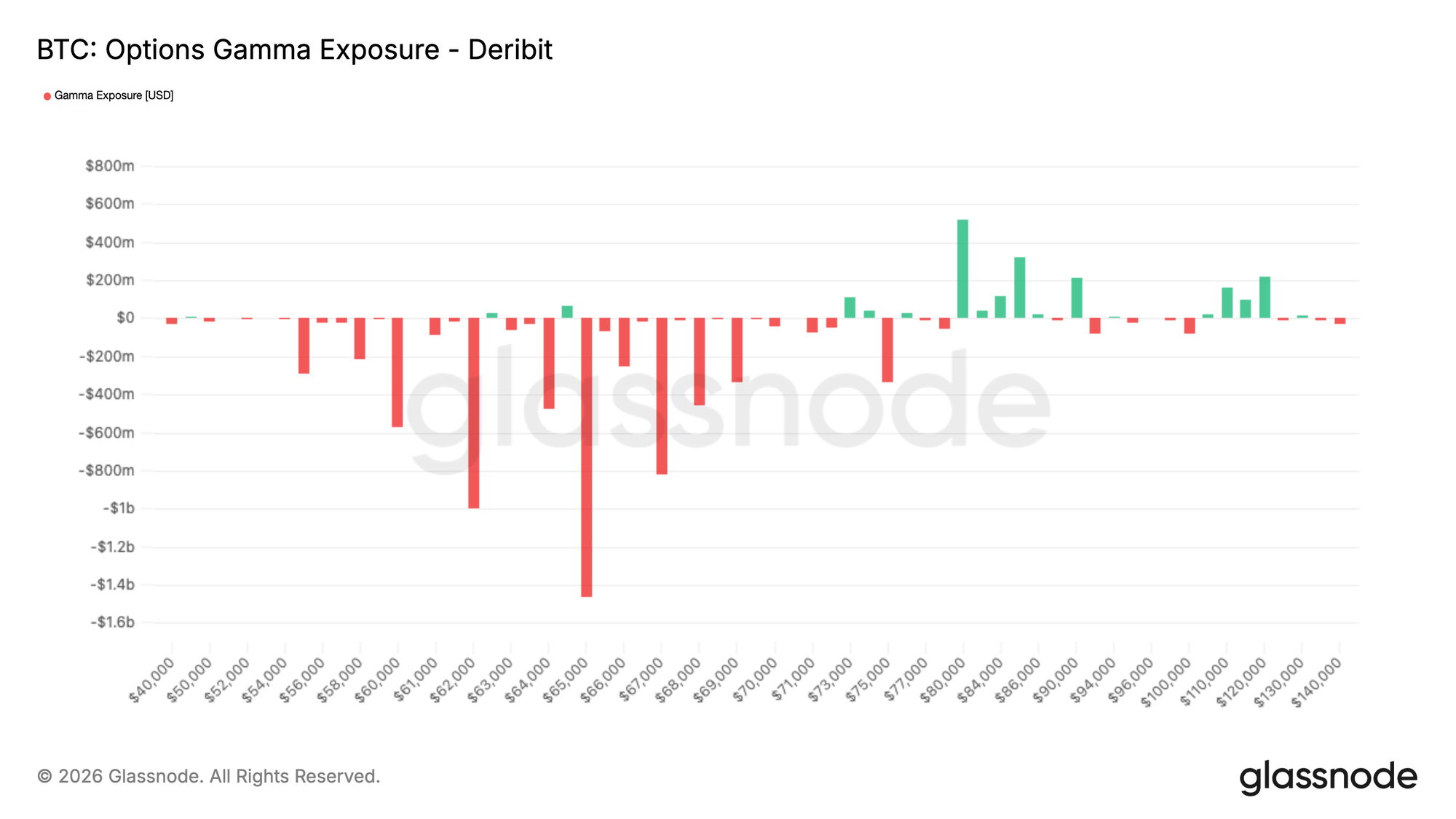 That persistent demand for protection is mirrored in current gamma positioning. Across expiries, the market sits inside a broad short gamma corridor between 70K and 55K, leaving the structure inherently fragile within this range.