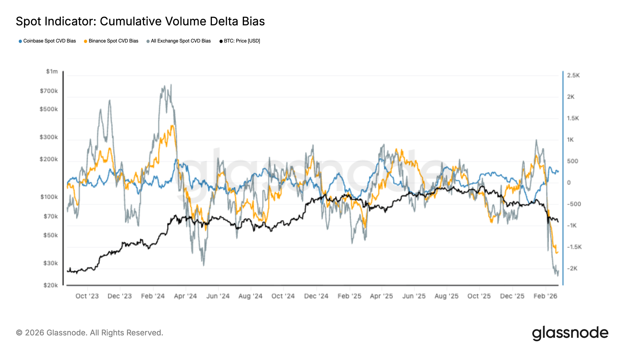 With spot flows now deeply skewed to the sell side, the market appears reactive and fragile. Sustained recovery will likely require a clear shift back toward spot bid absorption, particularly across Binance and aggregate exchange flows, before constructive accumulation can be confirmed.