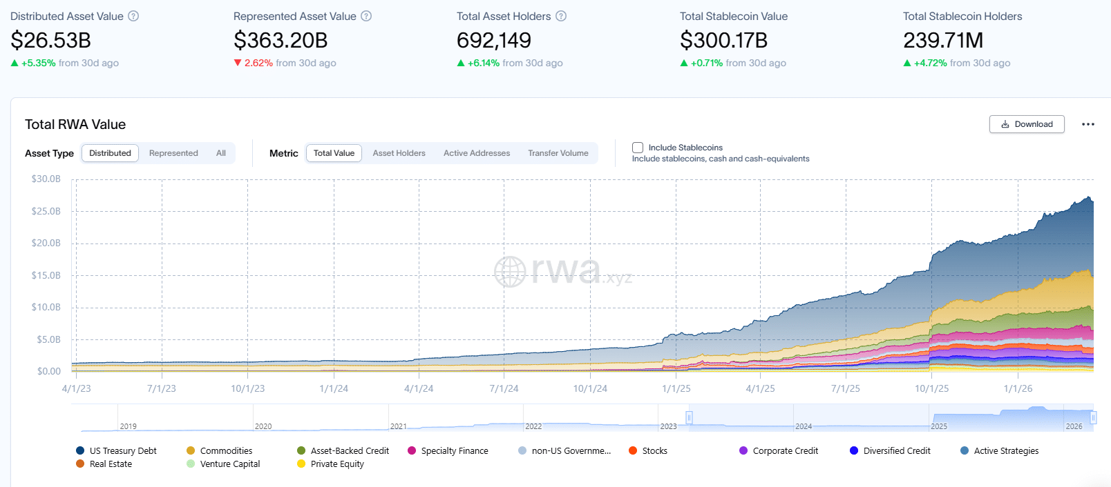 As the chart below shows, the U.S. tokenized Treasuries have jumped roughly 21% this month alone, now making up over 47% of total RWA asset value. In other words, as macro dynamics shift, the effect is clearly showing up in on-chain demand for tokenized assets.