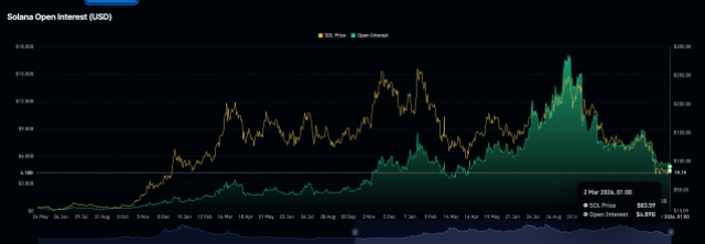 数据显示,Solana未平仓合约现已跌破50亿美元,撰稿时维持在48.9亿美元。值得注意的是,未平仓合约量与价格跌势高度同步,自2024年1月以来首次跌破100美元引发了连锁反应。