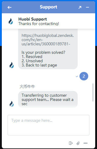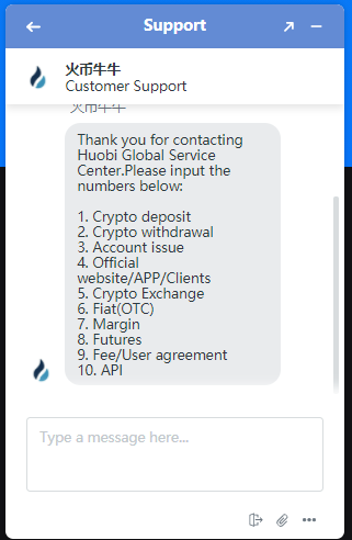 5. Type your message below, some messages will pop up for you to choose the question type, please input the numbers.