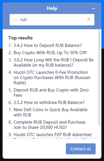 2. You can type the keywords of the problem in the search bar. For example, type "RUB" / “EUR” / “Deposit” / “Withdraw”, and related articles will show up.