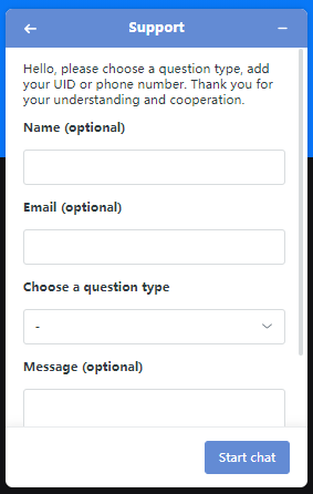 4. Please provide all the information that we ask from you accordingly. Next, click "Start chat", our online customer service will respond to you in minutes.