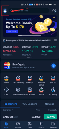 1. Войдите в свою учетную запись HTX и щелкните аватар в правом верхнем углу, затем выберите «Настройки Fiat».