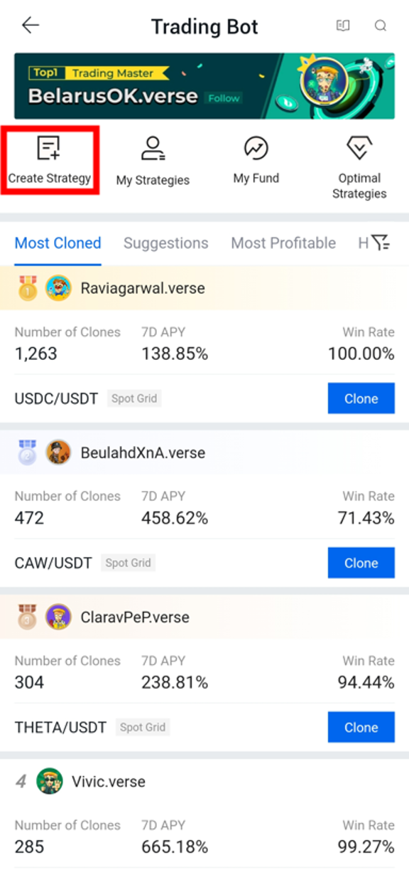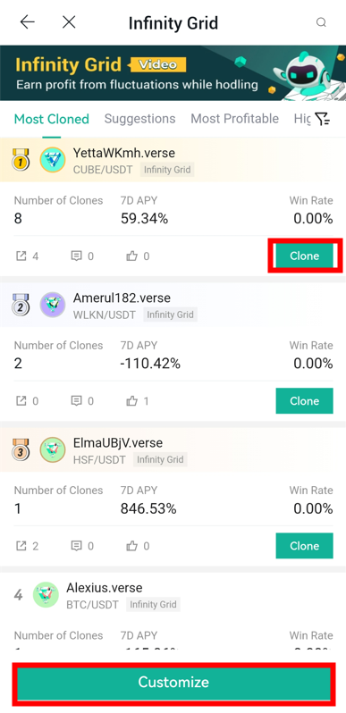 Infinity Grid Bot предоставляет два метода установки параметров: «Клонировать» или «Настроить».