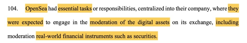 Согласно иску, OpenSea ввела их в заблуждение, побудив купить «бесполезные» NFT, являющиеся незарегистрированными ценными бумагами. По их мнению, OpenSea не модерировала свой рынок надлежащим образом, что помогло платформе обогатиться за счёт комиссий от продаж токенов.