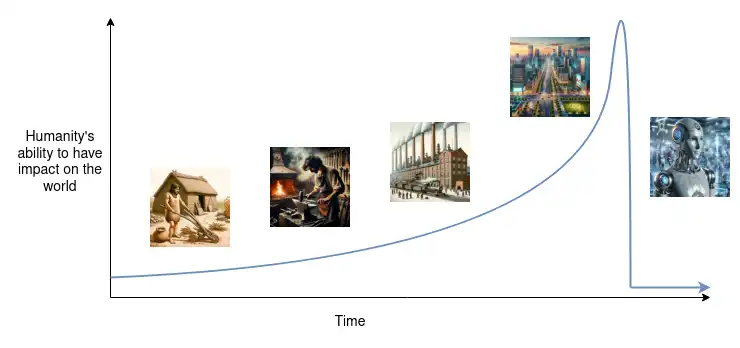 在 AI 出现问题可能使世界变得更糟的设想下,最糟糕的情况是(几乎是痛苦风险):它可能真的导致人类灭绝。这是一个极端的说法:尽管气候变化、人工大流行或核战争带来的最坏情况可能会造成很大的伤害,但仍有许多文明的「岛屿」将保持完好,以拾起残骸。但是,如果一个超级智能的 AI 决定反对我们,很可能不会留下任何幸存者,从而永久终结人类。甚至连火星都可能不安全。