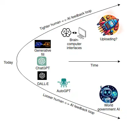 但是,如果我们想要将人工智能与人类的合作思想进一步推广,我们就会得出更激进的结论。除非我们创建一个足够强大的世界政府来检测并制止每个使用笔记本电脑上的个别 GPU 进行黑客攻击的小团体,否则最终会有人创造出超级智能 AI - 一个可以思考比我们快一千倍的 AI - 而任何一组使用手中工具的人都无法与之抗衡。因此,我们需要更深入、更远地思考这种人机合作的理念。