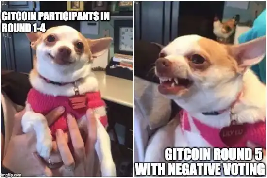 当我在以太坊生态系统内为 Gitcoin Grants 资金轮提供建议时,我发现了一个相关的现象。在第 4 轮中,一场小丑闹剧爆发了,因为一些最赚钱的受益者是 Twitter 影响者,他们的贡献被一些人认为是积极的,而被其他人认为是消极的。我对这一现象的解读是存在一种不平衡:二次资金允许你表明你认为某事是公共利益,但它没有提供一种表明某事是公共害的方式。在极端情况下,一个完全中立的二次资金系统会资助战争的双方。因此,在第 5 轮中,我提议 Gitcoin 应包含负面的捐款:你支付 1 美元来减少某个项目收到的资金金额(并隐式地将其重新分配给所有其他项目),结果很多人对此感到不满。