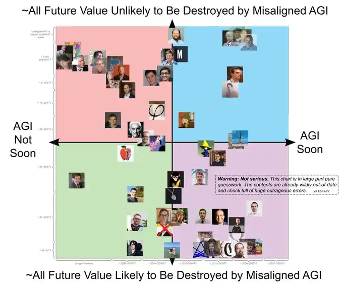 2022 年对机器学习研究人员的调查显示,研究人员种平均认为人工智能真的会杀死我们所有人的概率在 5-10% 之间,大致与你死于非生物原因(如受伤)的统计预期机会相当。