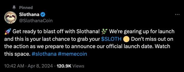 Slothana’s official Twitter account has grown to over 15,800 members, and each new post receives over 100,000 impressions.