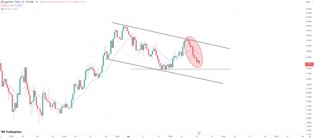 WIF has been forming a textbook descending channel pattern on the 4-hour timeframe as each bounce is met with fresh selling pressure.
