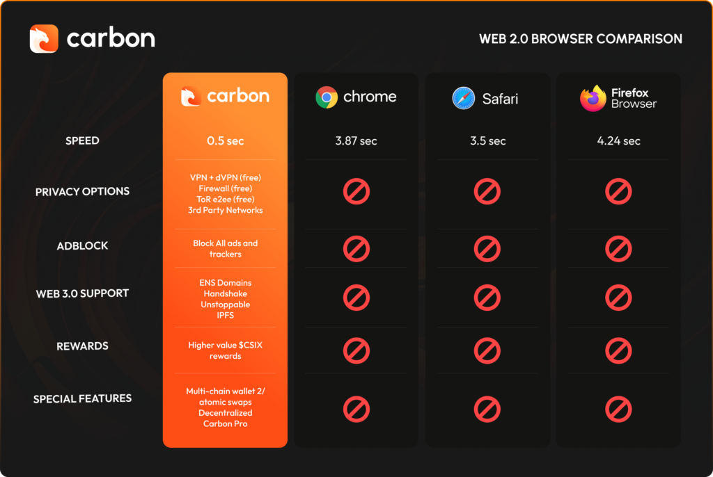 In summary, Carbon Browser combines speed, privacy, and innovative features to deliver a robust and secure Web3 experience, catering to the diverse needs of modern internet users.