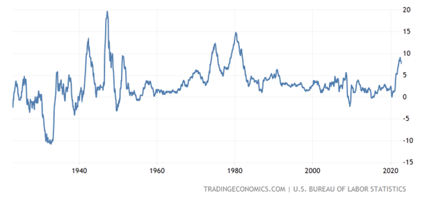As a result of the additional stimulus measures, inflation started to creep higher over the past two years. According to the U.S. Bureau of Labor Statistics, Inflation has been rising since 2021 and peaked above 9% earlier this year.