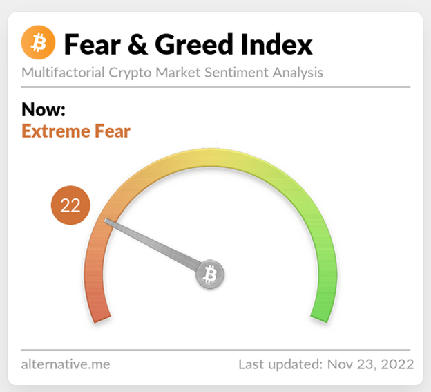 The crypto fear and greed index is a great metric to analyze sentiment. It’s currently at one of the lowest levels in history, indicating that there is extreme fear in the market;