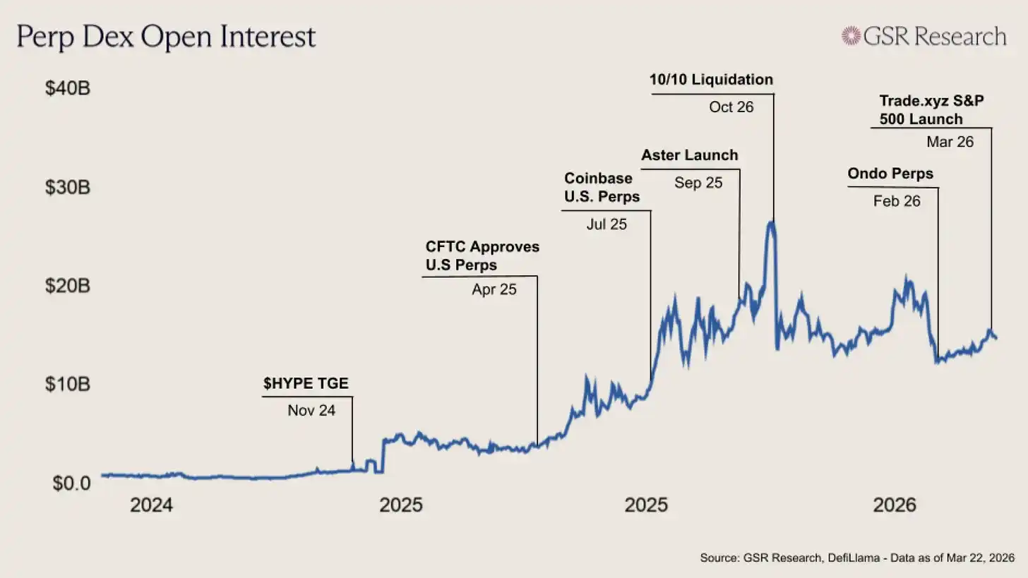 As Carlos Guzman and Slater Santer of GSR Research show in the chart, news flow in both centralized and decentralized perpetual contract markets has accelerated since the HYPE TGE: