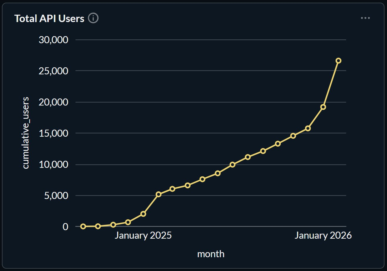 According to the latest data Erik released on March 1st, since the beginning of 2026, the number of API users on Venice has begun to grow rapidly, currently exceeding 25,000 users.