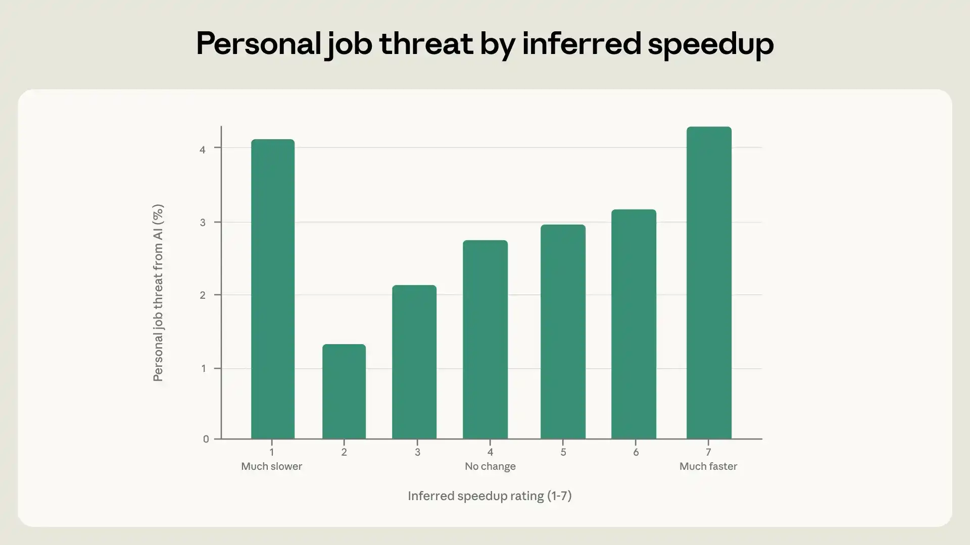 ARespondents who experienced the greatest speed increases in their work from using AI reported higher levels of concern about unemployment.