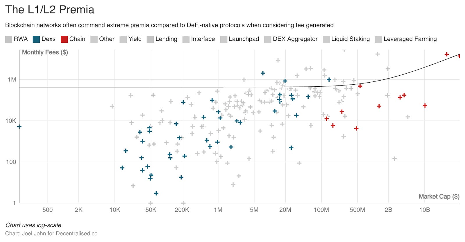 Historically, L1s and L2s have traded at extremely high premiums compared to independent underlying infrastructures or projects. If this premium had been well invested, it could have created new economic systems. It could have funded developers to build applications that truly matter to ordinary people outside the industry. However, the open-source nature of products and the ease of tokenization led to us having fifty identical product copies on thirty networks, destroying composability.