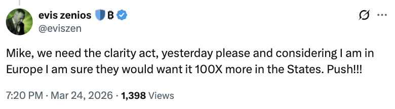 However, not everyone shares the same spirit. Some have questioned this move, noting that it may be a distraction from the passage of the CLARITY Act.