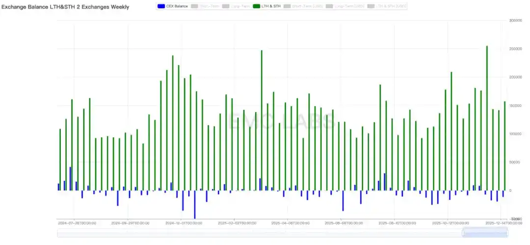 On the selling side, the situation is slightly pessimistic. Last week, long and short hands collectively sold over 157,000 coins, exceeding the scale of the previous two weeks. As selling increased, exchange outflows also saw a slight decline.