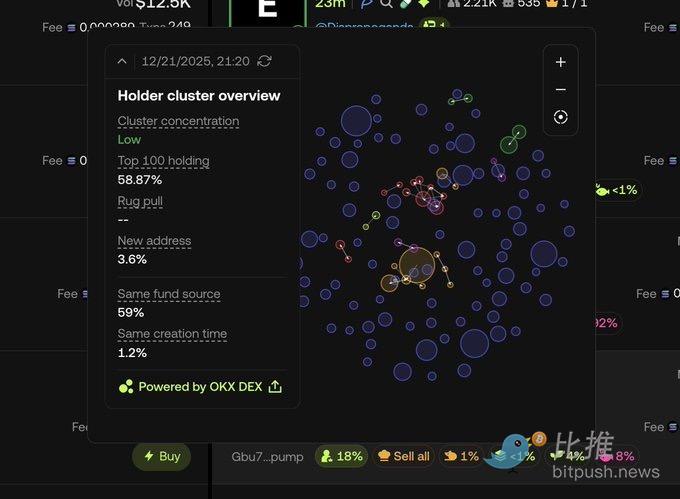 After clicking in, I don't do a full analysis. At this stage, I mainly look at one thing: Holder Cluster Overview. It allows me quickly understand the structure of wallet holdings and the strength of connections between wallets.