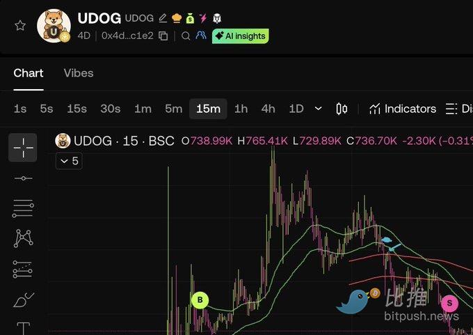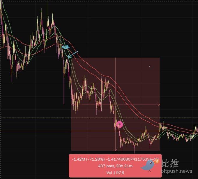 UDOG is a very typical实战 case. At one stage — around a $1.96M market cap, the chart very clearly showed: the trend was ending. The MAs were no longer aligned, momentum明显衰减, the market could no longer push forward.