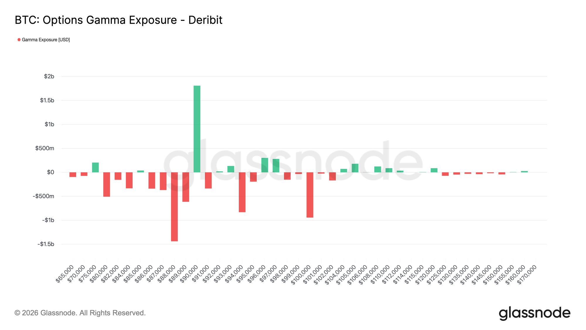 As a result, price action remains fragile below 90k, while that level itself is likely to act as a friction point. Reclaiming it sustainably would require sufficient momentum and confidence to absorb dealer hedging flows and shift gamma exposure higher.