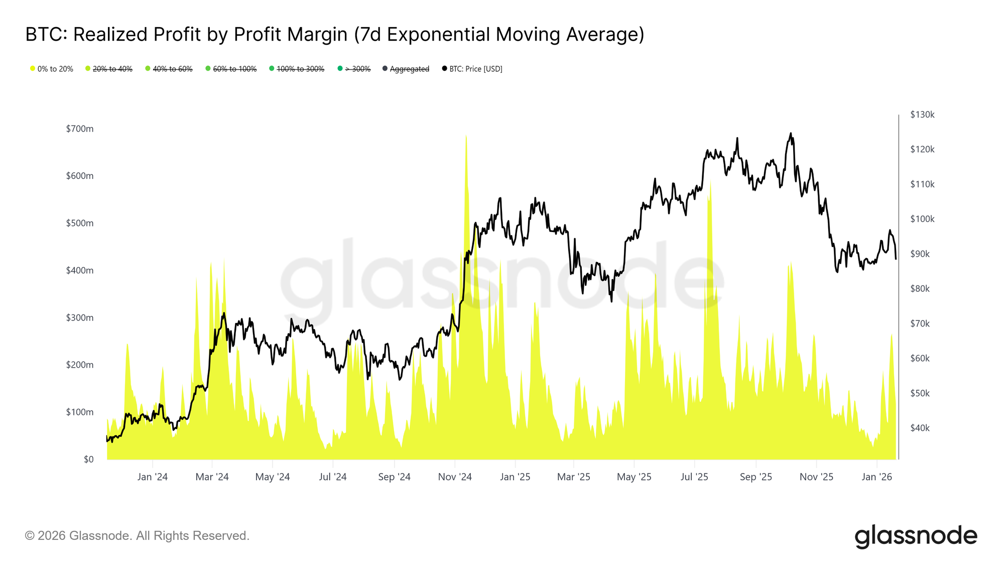 Complementing the loss-driven exits, profit-taking behavior further clarifies who is supplying liquidity into the recent strength.