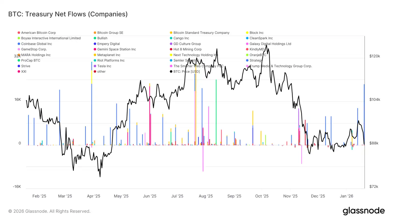 Overall, the latest data shows corporate treasuries are only a marginal, selective source of demand, with an intermittent impact that is not yet decisive for overall price dynamics.