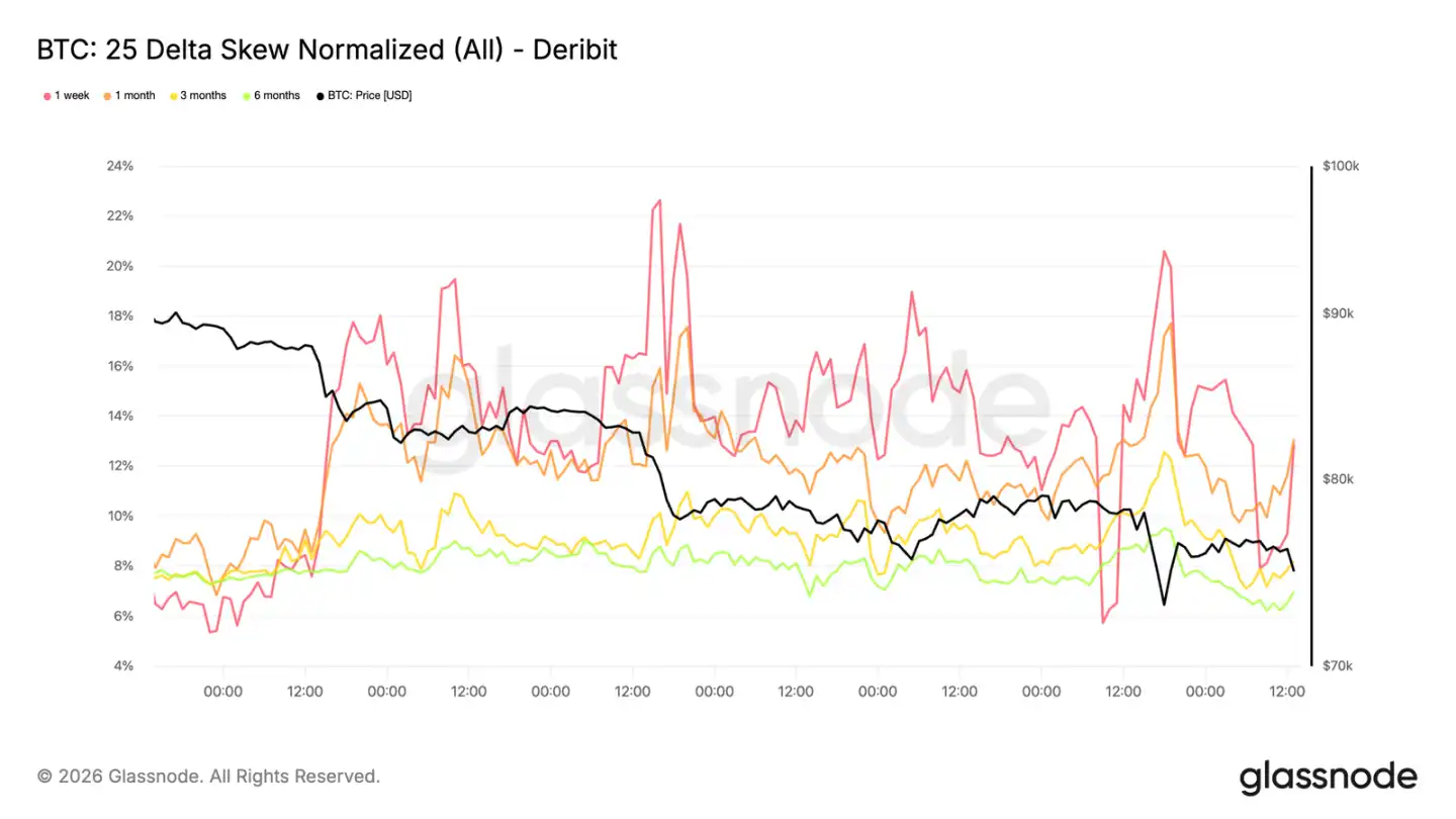 This reflects more a demand for protection against sudden drops rather than a clear directional view. Traders' reluctance to sell short-term options in size keeps the cost of downside protection elevated.