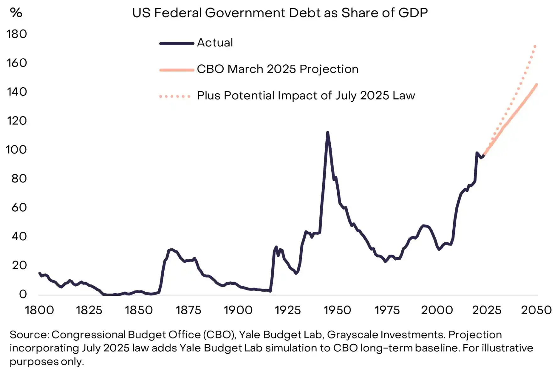 Bitcoin's total supply is permanently capped at 21 million coins, determined entirely by programmatic rules. For example, we can be highly certain that the 20 millionth Bitcoin will be mined in March 2026. This transparent, predictable, and ultimately scarce digital currency system is conceptually simple, but its appeal is growing in the current environment where the fiat system faces tail risks. As long as the macro imbalances causing fiat risks continue to worsen, portfolio demand for alternative store-of-value assets is likely to keep increasing (see Chart 8).