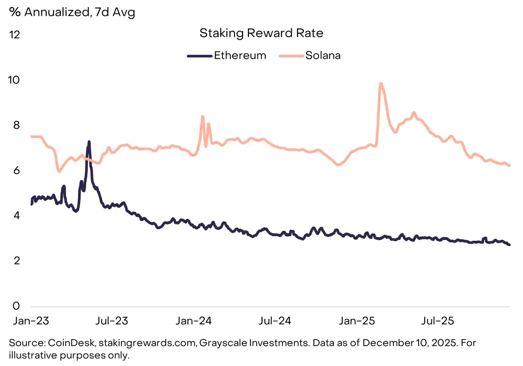 Regulatory guidance around liquid staking services is expected to directly benefit Lido and Jito—the leading liquid staking protocols by TVL (Total Value Locked) in the Ethereum and Solana ecosystems, respectively. From a broader perspective, the ability of crypto ETPs to participate in staking will likely make "staking as the default holding method" the standard structure for Proof-of-Stake (PoS) token investments, thereby pushing up the overall staking ratio and exerting some downward pressure on staking yields (see Chart 17).