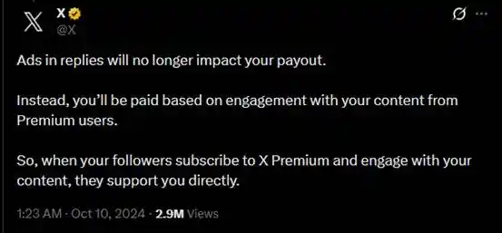 But as mentioned above, building view count is just the beginning. Creator revenue sharing is calculated based on the verified (Premium member) engagement of the post (such as likes and replies), while also considering the influence of different content types, such as articles, videos, Spaces, and live streams.