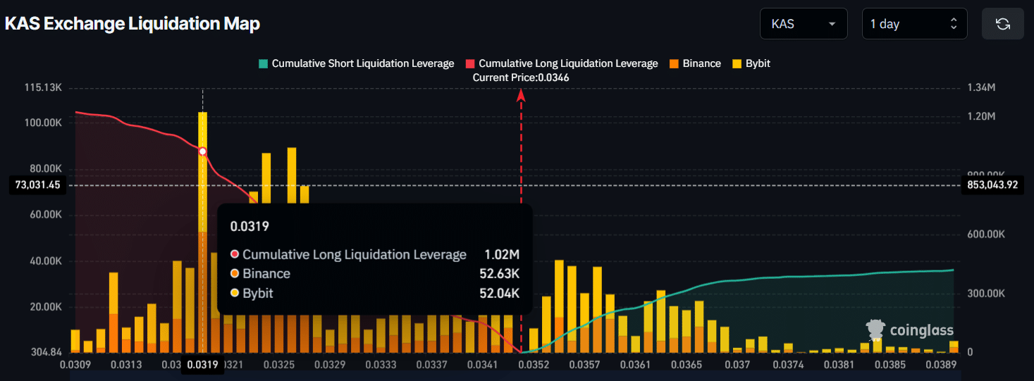 If KAS closes a daily candle above this key level, it could see a price jump of 51% and may reach the $0.055 level. However, $0.040 appears to be a key resistance level that could act as a hurdle for the asset in its upcoming rally.