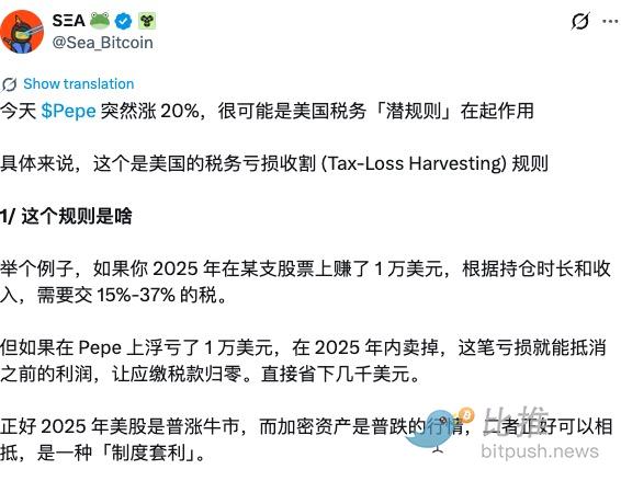 Several market participants pointed out that at the end of 2025, many U.S. investors sold losing assets through tax-loss harvesting to offset tax liabilities. After entering 2026, capital that remains bullish quickly re-entered positions, and meme coins, due to their deep declines, decent liquidity, and high volatility, became the preferred choice.